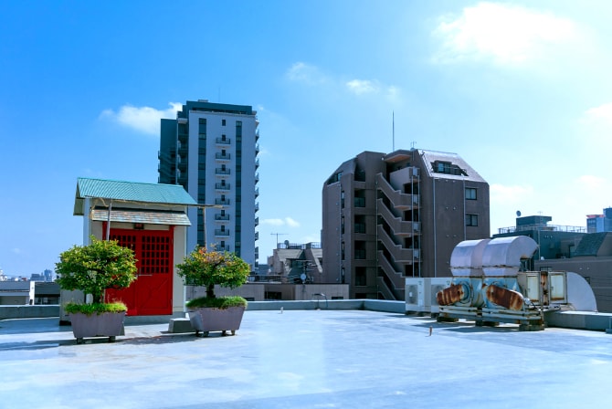 池袋本社の屋上には神社があり、毎朝一緒に働く仲間の安全を願ってお参りをしています。神社がある会社は他では珍しく、一緒に働く仲間を大切にするヨドセイならではです。