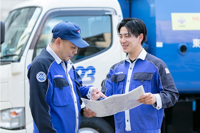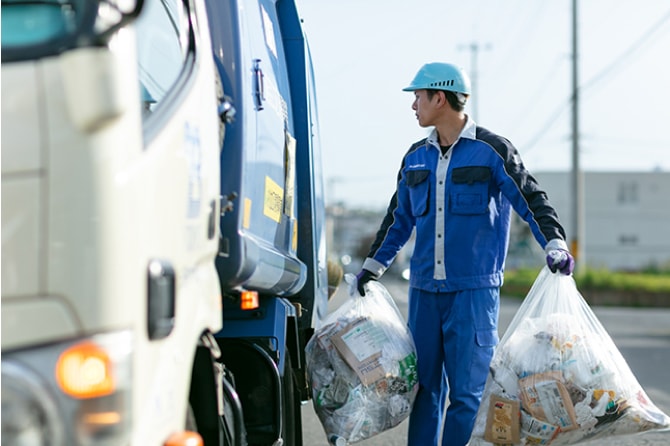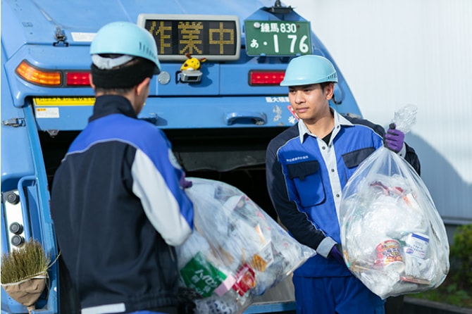 清掃車両を運転し、家庭ごみやホテル、飲食店などから出るごみの収集・運搬を行います。法律を遵守し安全運転を心掛けたり、道幅の広い道路だけでなく、住宅が密集した狭い道路を通ることも多くドライバーとしての運転技術が必要な職種で、高い運転技術が自然と身に付いていきます。