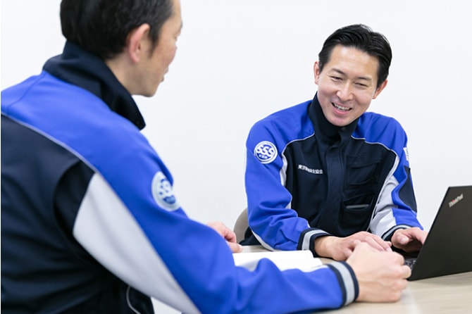 作業員、運転手の乗務する車両の配車管理を行なっています。また業務が安全に遂行できるよう関係各所との連絡をはかり、無理のない作業計画を立てています。その他にも労務管理や業務上における様々な事案に対応し、業務部の皆さんが働きやすい環境を整えていくのが事務職の仕事です。